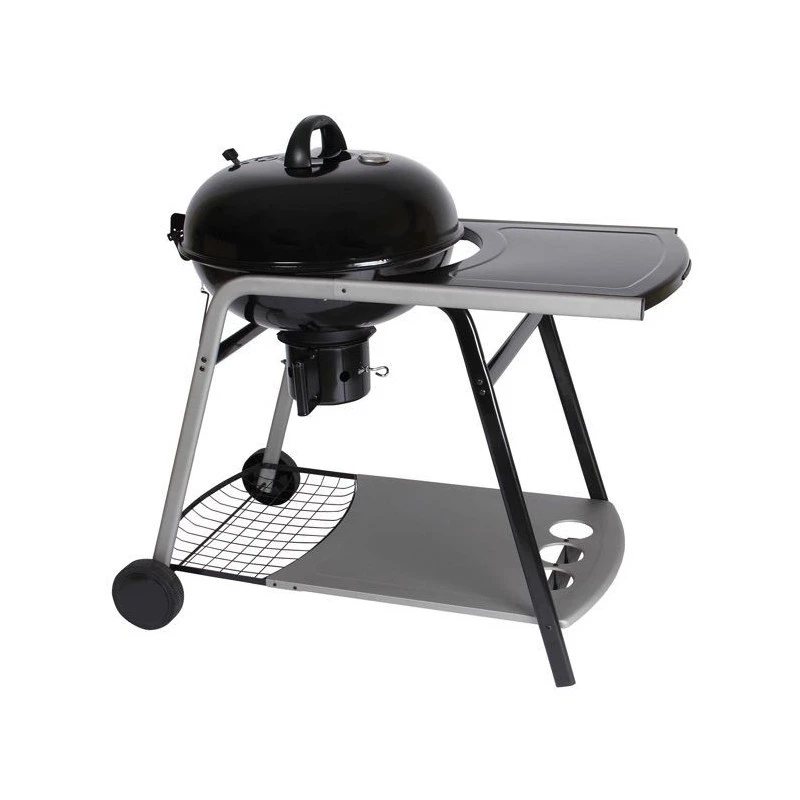 Grand barbecue familial à couvercle équipé d’une tablette latérale pour poser les plats et ustensiles