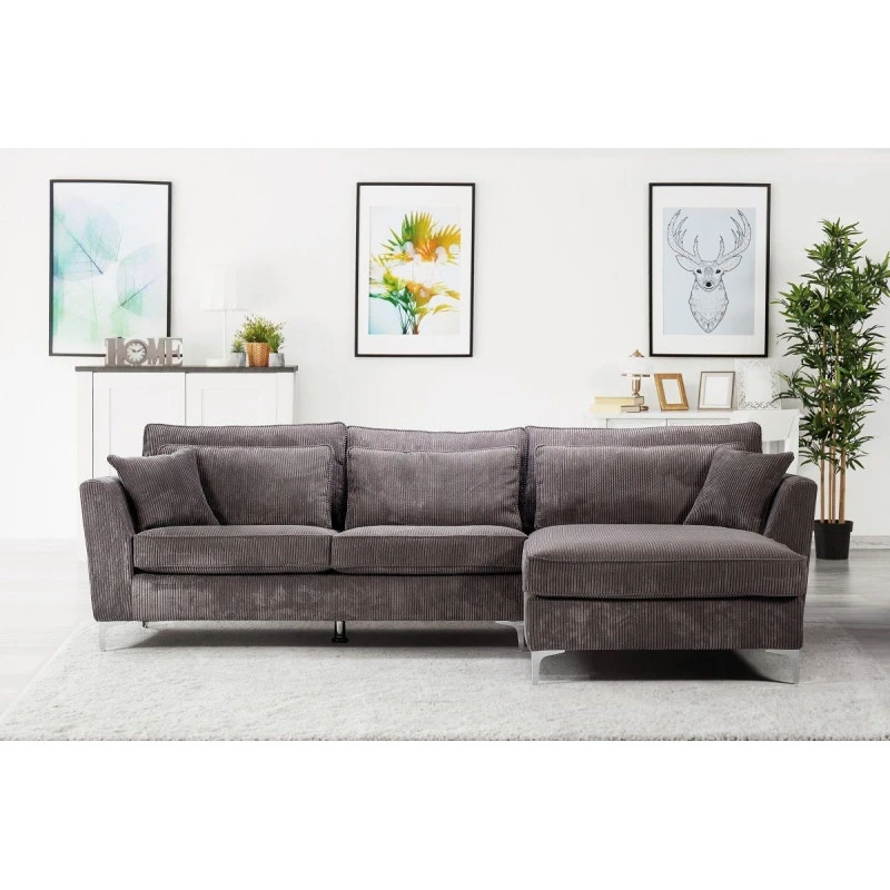 Ce canapé d’angle en velours côtelé gris n’a que des points forts : en plus de son design très tendance, il est de grandes dimensions et de grand confort.