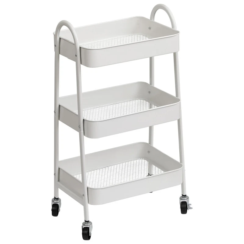 Besoin de rangement dans la salle de bain ? Optez pour la desserte en métal blanc sur roulettes.