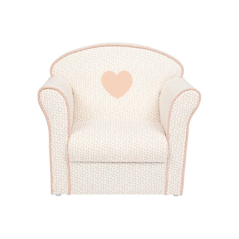 Tout en douceur, découvrez le fauteuil pour enfant cœur dans les tons rosés de la marque Ostaria.