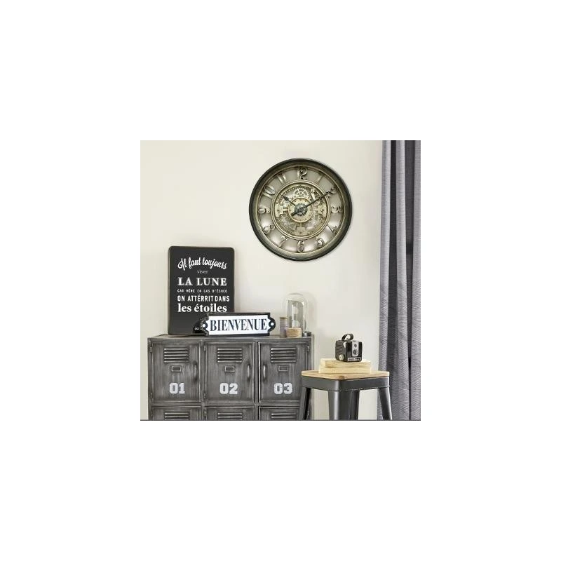 Horloge mécanisme D51 cm de la marque Atmosphera. Craquez pour le design de cette pendule effet industriel avec mécanisme apparent. Son effet métal vieilli donnera un aspect rétro tendance.