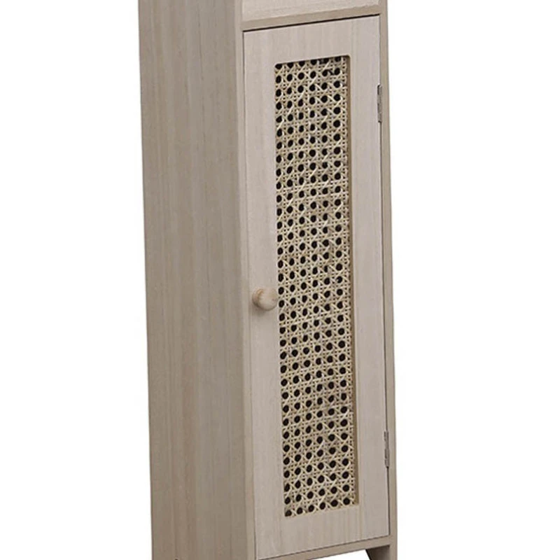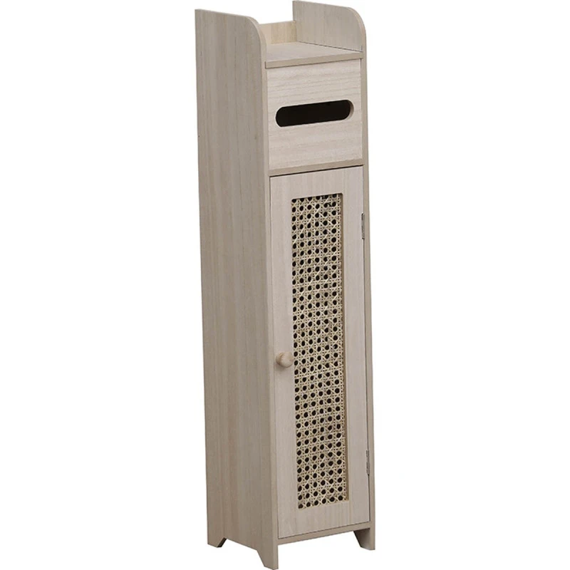 Découvrez le meuble réserve et dérouleur avec porte cannage en coloris naturel.