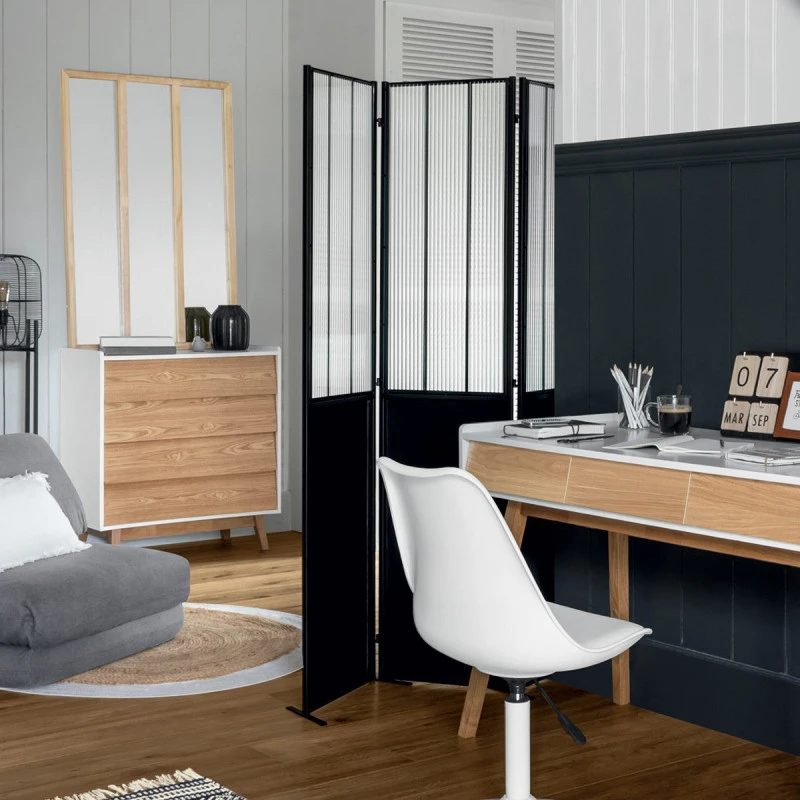Le paravent Atelier en métal et verre trempé de la marque Atmosphera s’inscrit totalement dans le style industriel.