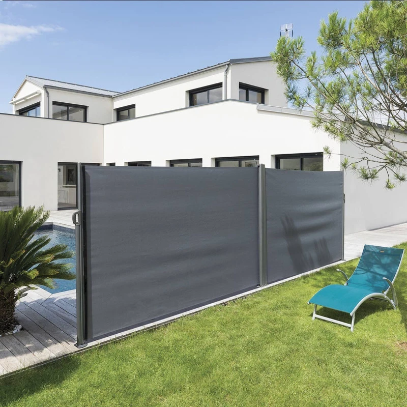 Pratique, le paravent double écran Antao pour l’extérieur rétractable en coloris ardoise et graphite de la marque Hespéride sera idéal pour vous éviter les vis-à-vis trop présents.