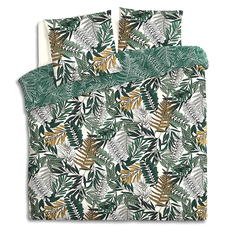 Cette parure très tendance avec ses motifs tropicaux, apportera une touche moderne dans votre chambre. N’hésitez pas à ajouter des coussins et oreillers moutarde pour un style certain.