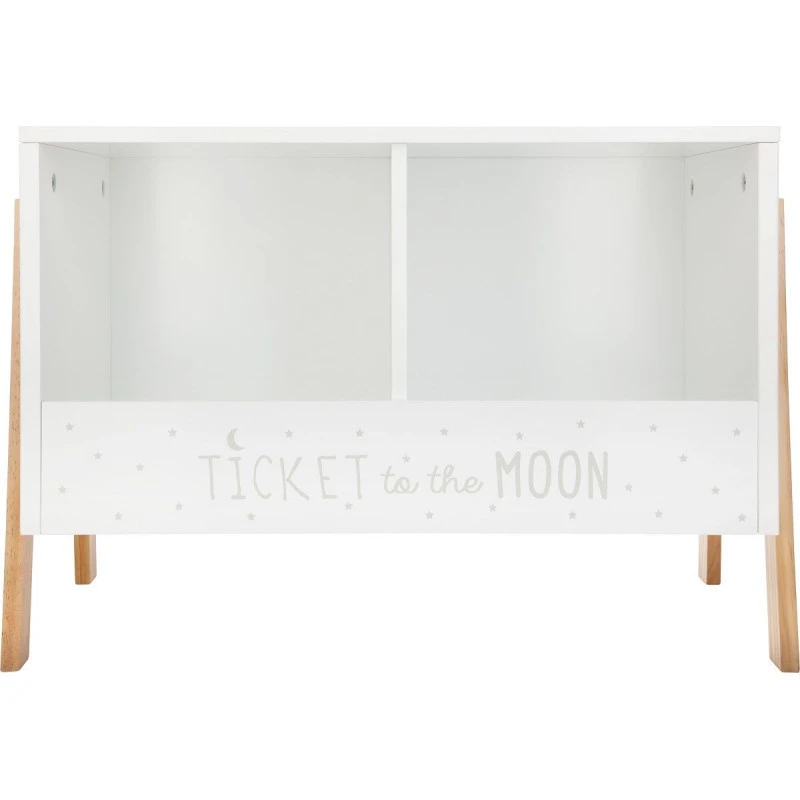 Rangement 2 cases avec message sur le devant ‘Ticket to the moon’.