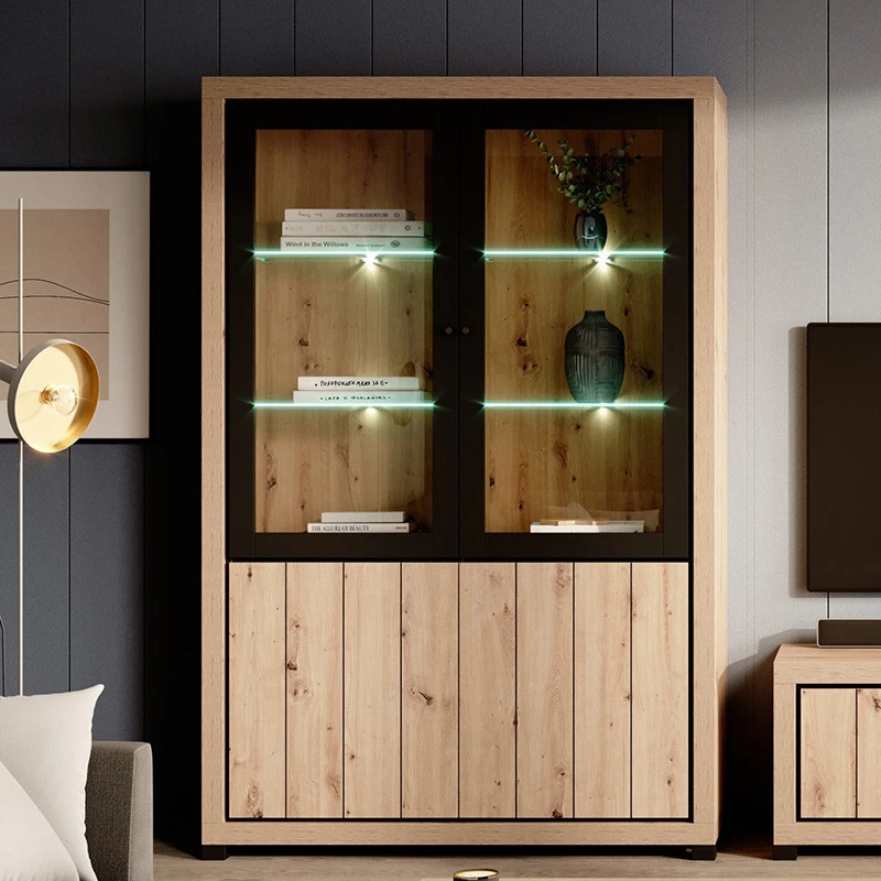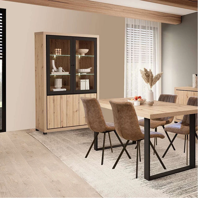 La vitrine 2 portes + 2 portes vitrées Dijon apporte un aspect élégant, avec des lignes équilibrées et une finition lisse.