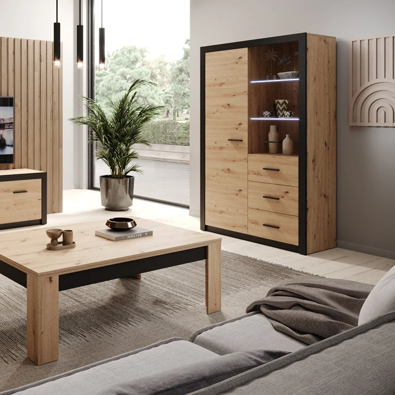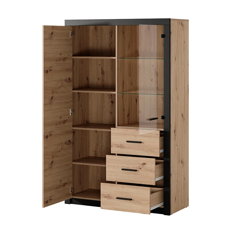 Vitrine 2 Portes Naturel Et Noir Brussel